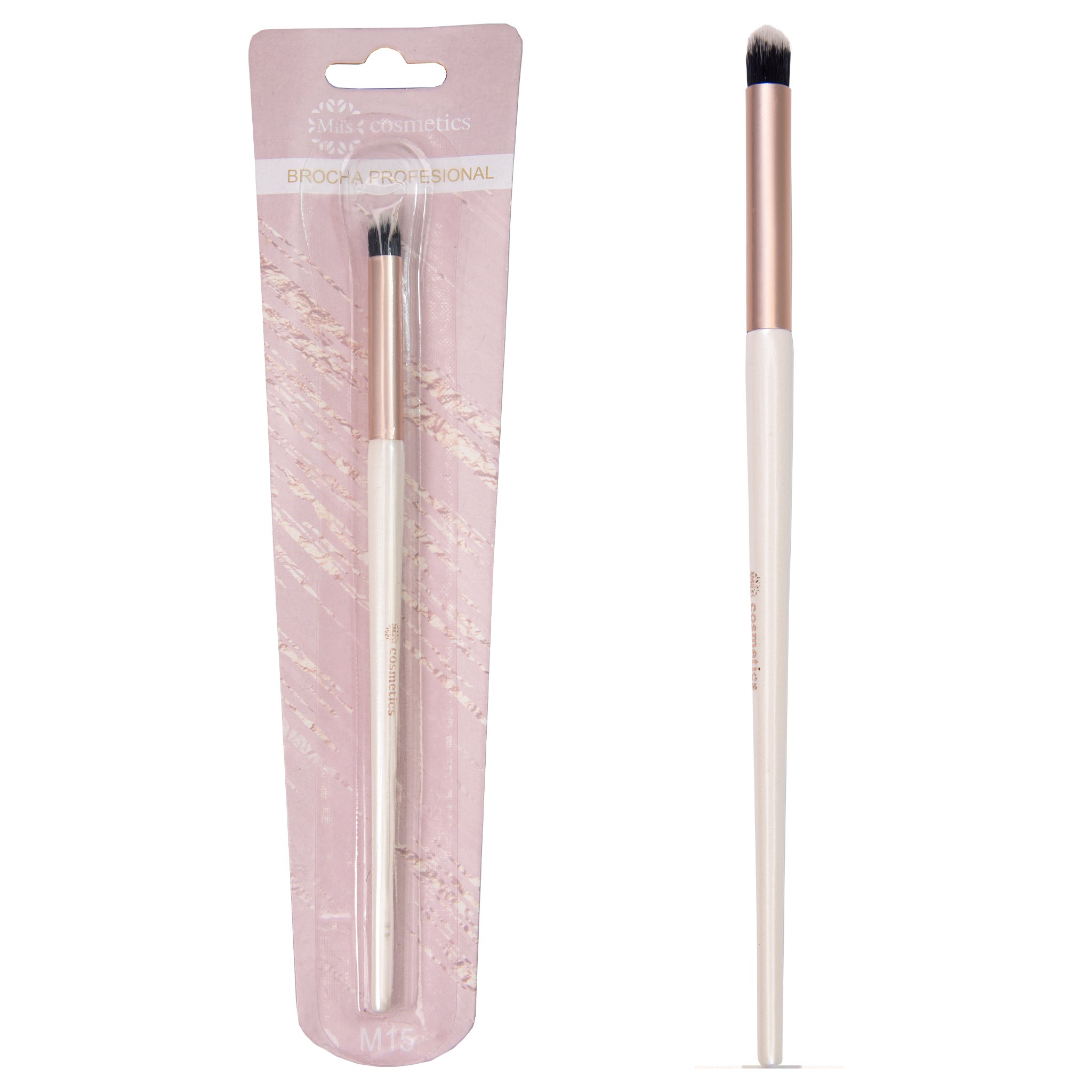 Brocha de maquillaje de uso profesional, ideal para aplicar con mayor precisión y saturar colores en la cuenca del ojo. Sus cerdas son en material sintético de alta calidad y se sienten muy suaves sobre la piel. Un mango de madera de forma alargado para poder tener mayor comodidad y estabilidad, por último, una virola metálica que permite asegurar las cerdas de su mango.