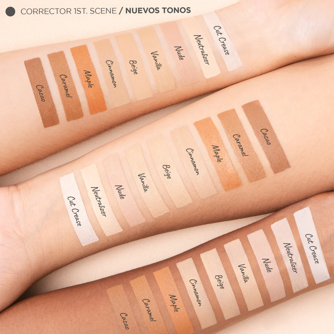 El corrector 1st Scene es de alta cobertura y te ayuda a camuflar tus ojeras, además mantiene esa zona hidratada; Ideal para piel normal, seca o madura, es de acabado luminoso que proporciona un máximo cubrimiento de imperfecciones y manchas . Su fórmula contiene cafeína y ácido hialurónico que ayuda a desinflamar la zona. Viene en 6 tonos y es de larga duración.