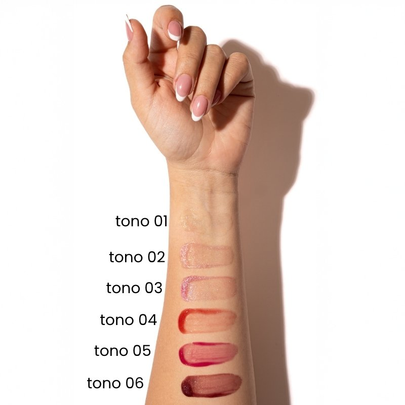 Brillo super glossy con extra brillo. Con aplicador flexible para unos labios jugosos y mega hidratados. Disponible en 6 tonos